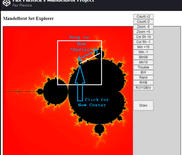 If you decide to click on over to my Mandelbrot Set Explorer, it is functional now for desktop and mobile. Granted, on a phone, the image is not very big. It is responsive to touch, but not necessarily in the expected manner. I did not yet introduce the pinch-to-zoom that might be your first instinct. The basics are as follows: