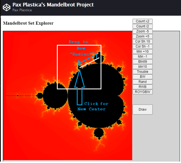 A brief intro to my poorly constructed Mandelbrot Set explorer, currently at codepen.io.